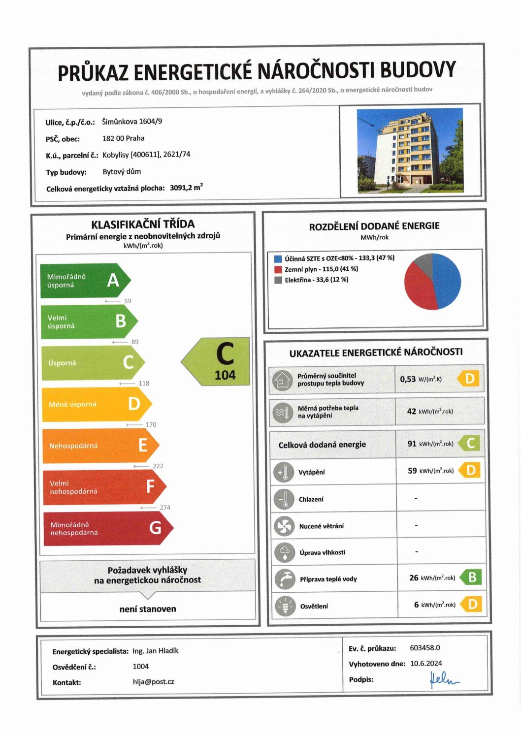 Dům je ve velmi dobrém stavu: má zateplenou fasádu, plastová okna a nový výtah. Energetická náročnost budovy je v kategorii C.